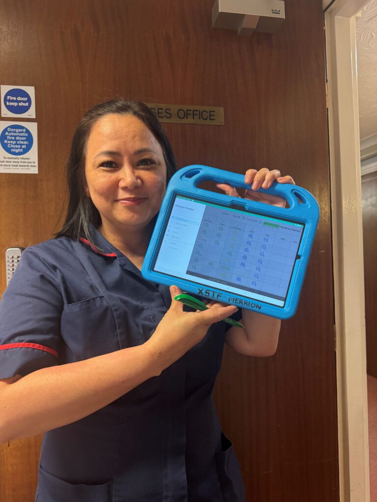 Pictured here is our Senior Staff Nurse, Maritess, utilising one of our newly-deployed iPads. This technology enhances medication safety and allows us to streamline processes, ensuring accurate and efficient care delivery.